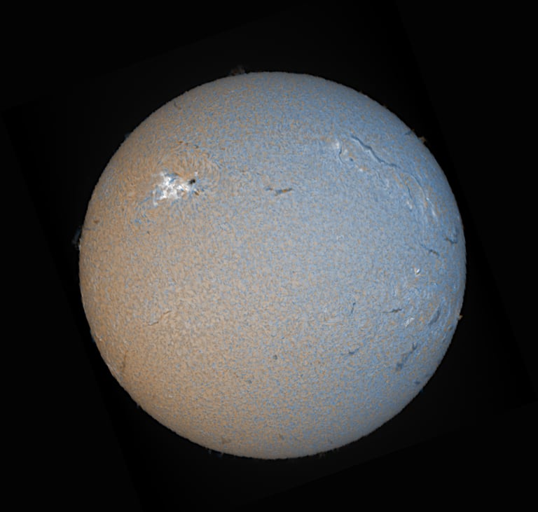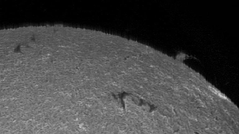 The Sun’s details and contrast are captured in slices, recorded as a video while the mount slowly slews, causing the Sun’s image to "scan" through the slit. Specialized software then reconstructs the full image of the Sun from this video data